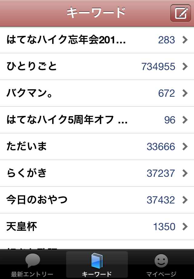 - お気に入りユーザー・キーワードのエントリーを閲覧できます